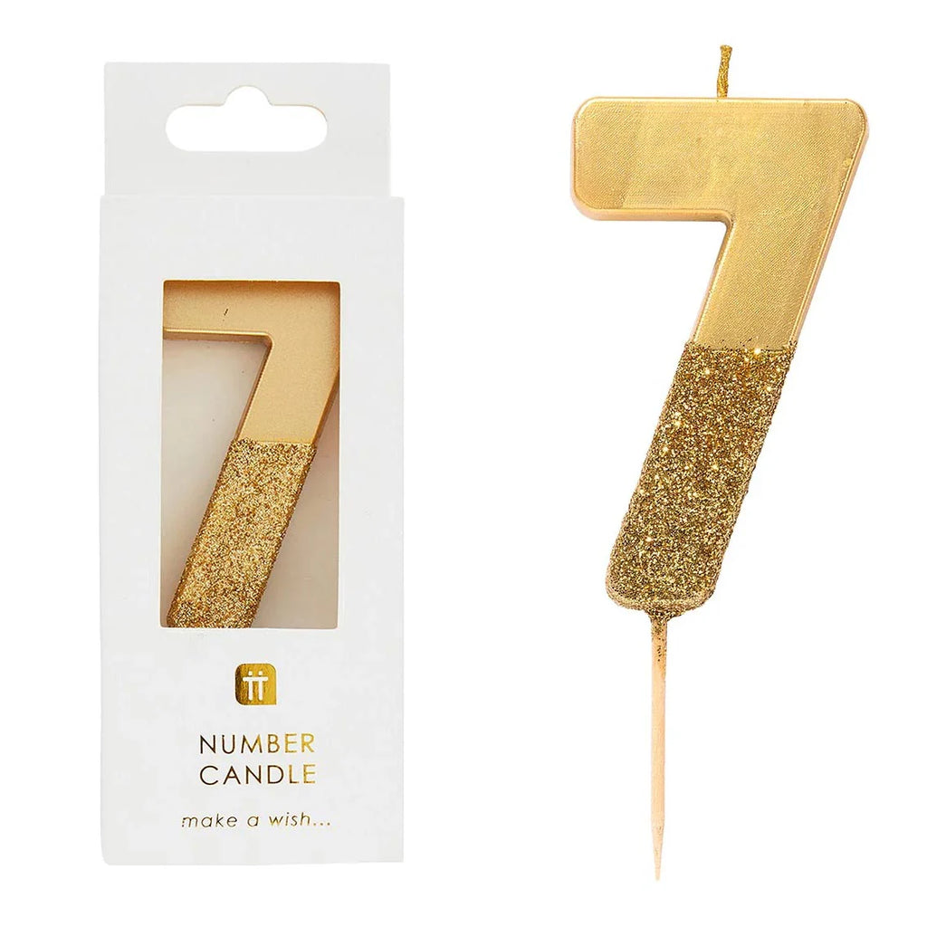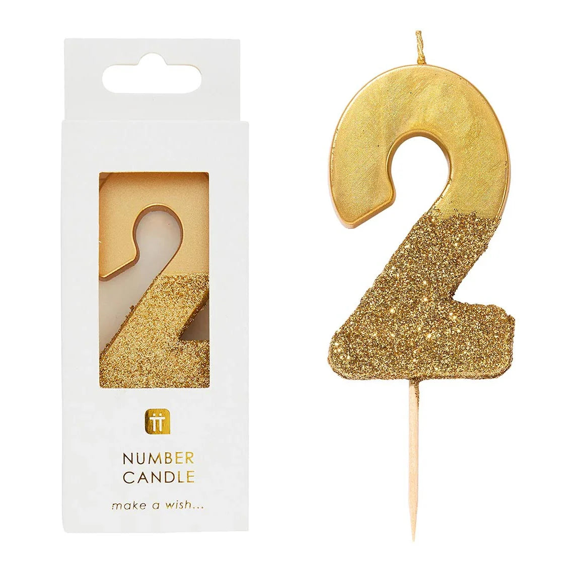 Gold number 0-9 birthday candles dipped with glitter starter set by Talking Tables. Add some sparkle to any birthday cake with these stylish gold glitter number birthday candles. The perfect cake topper decoration for birthday celebrations or a wedding anniversary. Mix and match the gold occasion candles with other numbers to get your desired age.