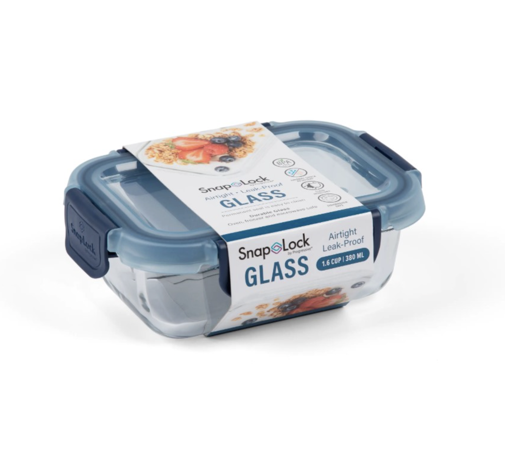 Glass Food Storage Container, 1.6 Cups with Blue Lid