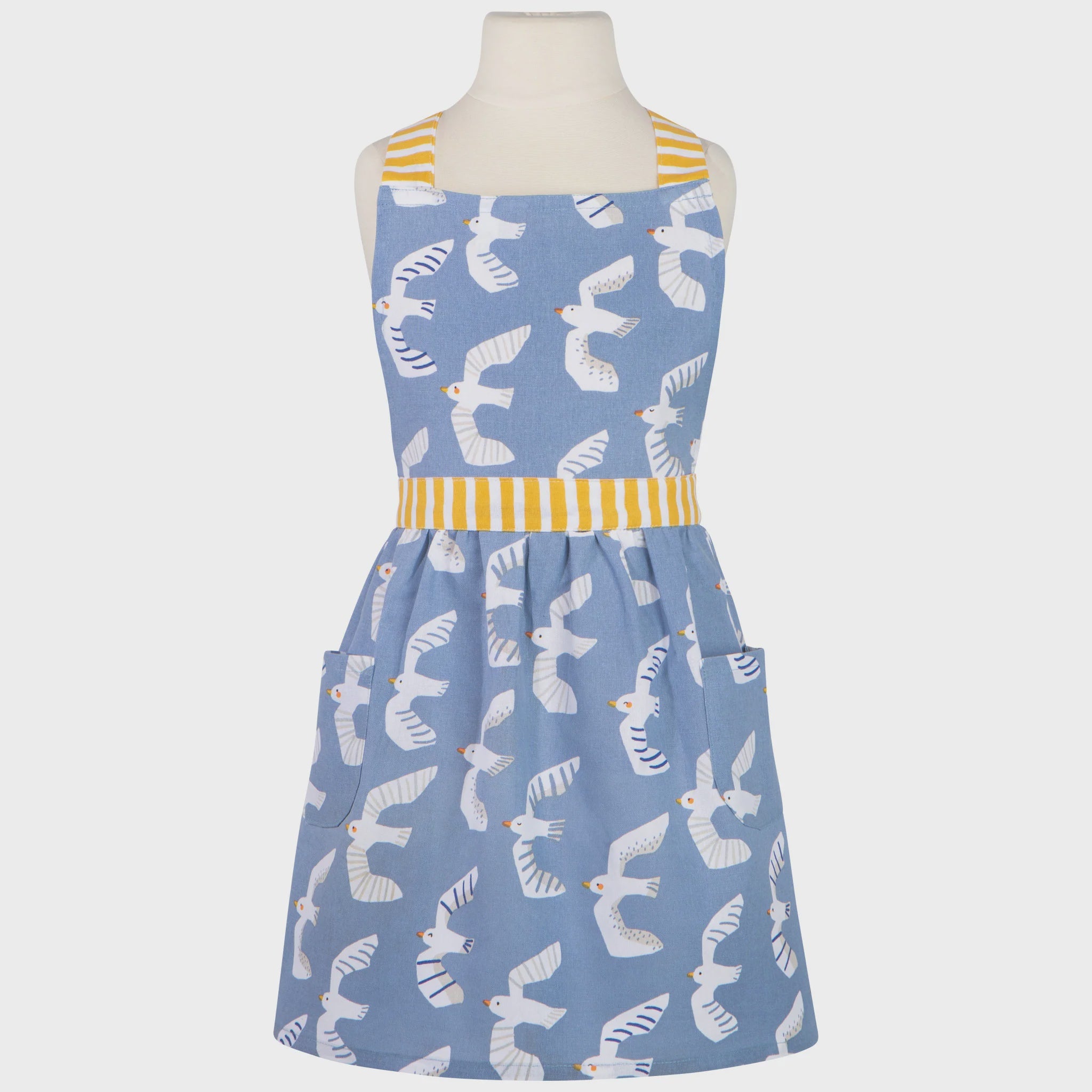 Adding a dash of whimsy and a dollop of color, our Minnie Birdie apron will stir up the creative juices of any small chef. Easy breezy seaside charm swoops in with our Birdie collection. High-spirited, hand-drawn birds and a mineral blue and golden yellow palette capture the joy of flight and fresh air.