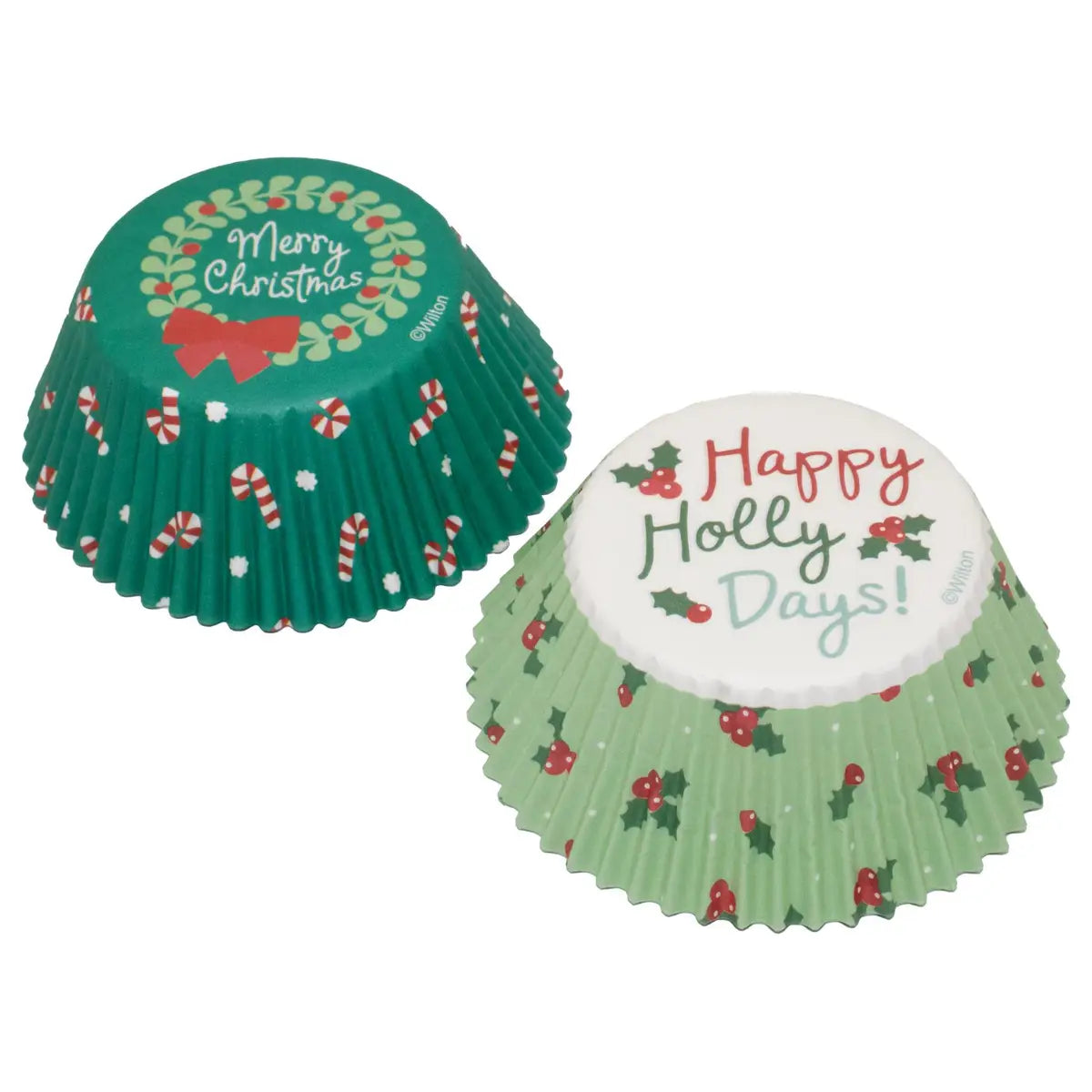 Bake cupcakes and muffins for Christmas in these Merry Christmas Cupcake Liners. These festive Christmas cupcake liners are sure to be a hit! They fit standard muffin/cupcake pans and minimize cleanup by allowing your treats to simply pop out of the pan when they're done. You can also use these baking cups to hold small party snacks, like nuts and candies.