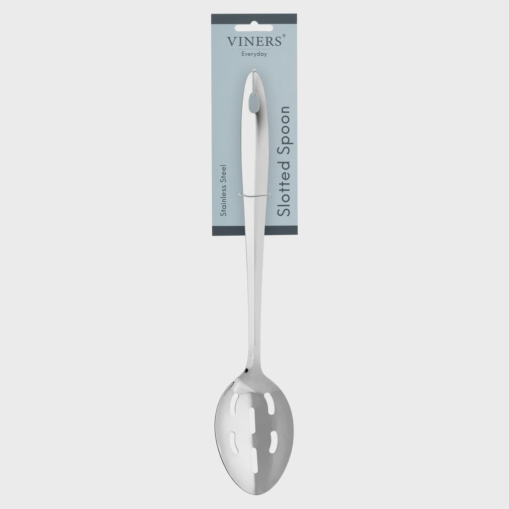 This stainless steel slotted spoon measuring 33cm in length has been designed with a handy hole that is compatible with most utensil racks and wall hooks for easy storage.