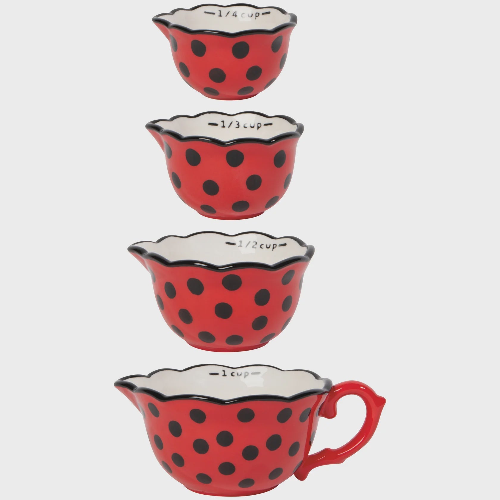 Steeped in style, our teacup-inspired ceramic Ladybugs measuring cups sweeten up baking time with hand-painted details and scalloped rims. It's spot on for summer! Our Ladybugs collection is bright, bold, and dotted with whimsy, making it a bug deal for any sunny day.