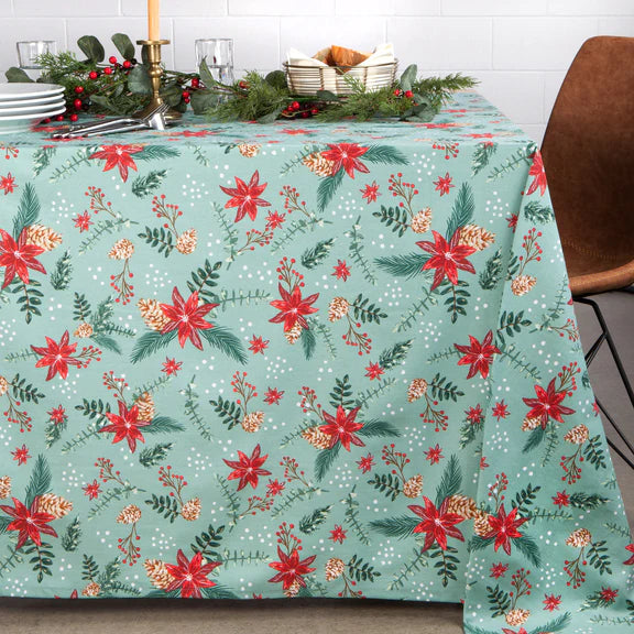 Features of the Poinsettia 60" x 90" Printed Tablecloth include: