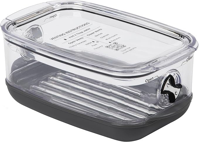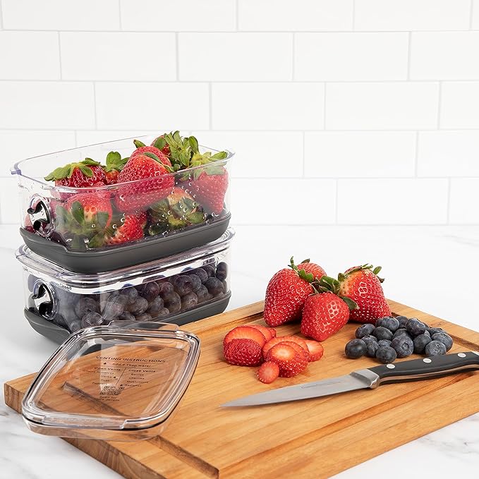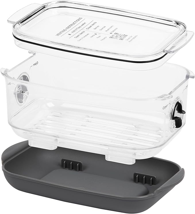 - MAXIMUM FRESH PRODUCE: Keep produce fresh up to 2 times longer in this storage container featuring a Flow-Through Stay-Fresh vent system & reservoir base that you can adjust for maximum freshness.