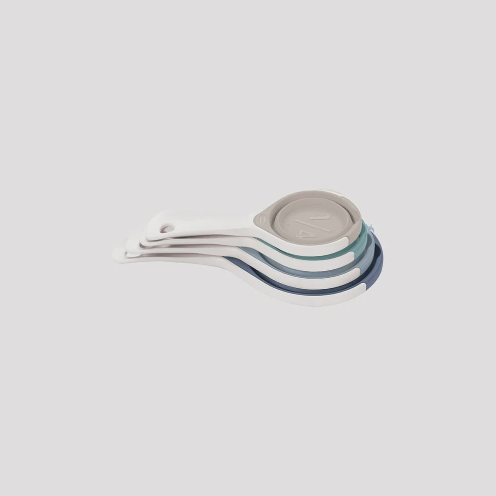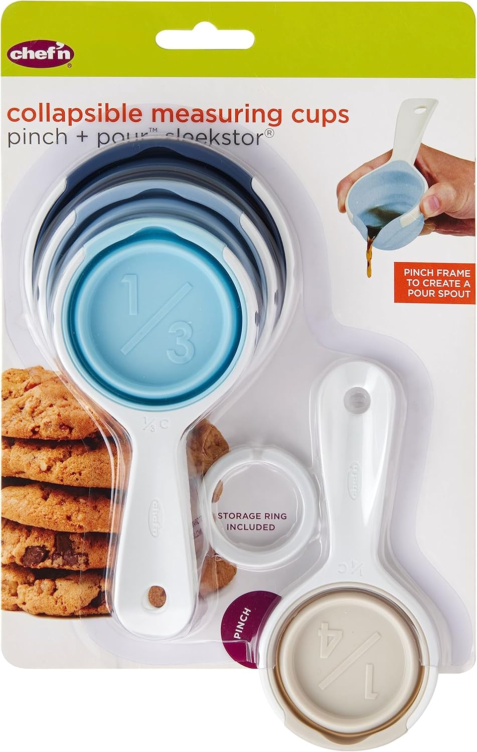 These measuring cups work best in a pinch. When you pinch the sides, that is, to reveal a convenient pour spout. They are space savers, too; the heat and stain resistant silicone cups expand for use and collapse for convenient storage.