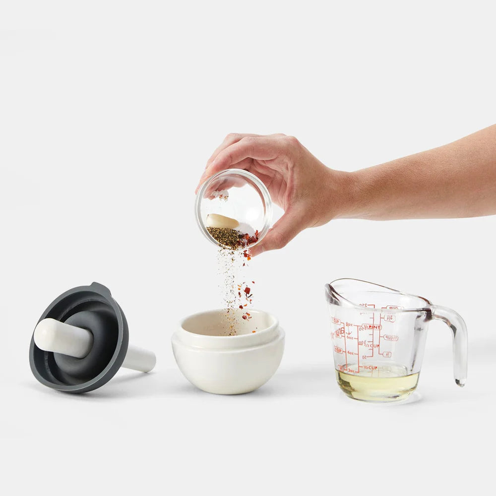 Sugar and spice and everything nice—that’s what goes into your SpiceBall! Ours comes with a splash guard so you can combine dry and wet ingredients, AND keep your countertops clean. What are you waiting for? It's go thyme