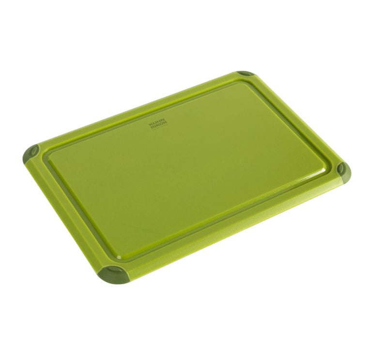 The COLORI+ cutting board serves a wide variety of purposes and will bring you joy for many years to come. Thanks to its non-porous design, the cutting surface stays fresh and impenetrable to odours and won’t blunt knives. TPE corners ensure the cutting board remains firmly in place while in use. Both sides of the cutting board can be used, with one side featuring a groove to catch any liquid escaping from food with a high water content. The flat side is perfect for scraping chopped food straight into a pan or bowl. Thanks to its thickness, this sturdy cutting board won’t lose its shape in the dishwasher. It’s available in a choice of two different sizes. .