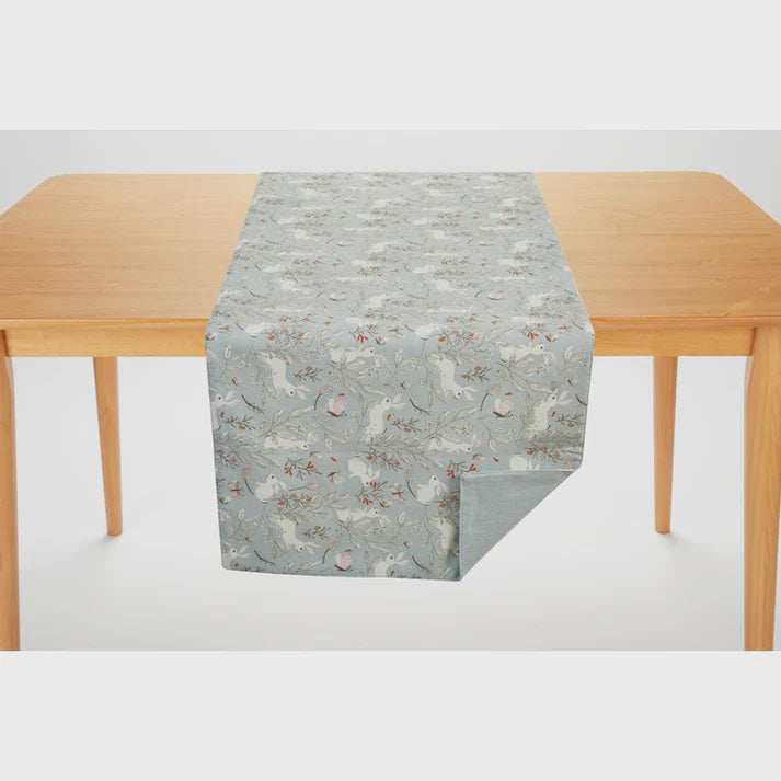 With a darling design of bunnies, butterflies, and blooms on a misty blue background, this lovely table runner sets the perfect spring table! This table runner evokes a casual yet sophisticated energy, and provides endless options to reflect your style.