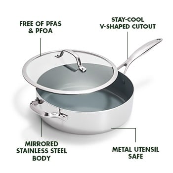 Ideal for one-pan meals and family-sized tasks, this pan makes running out of room a thing of the past. The spacious 5-quart interior features our groundbreaking Infinite8 ceramic nonstick coating, so your big meals won't require a big cleanup.