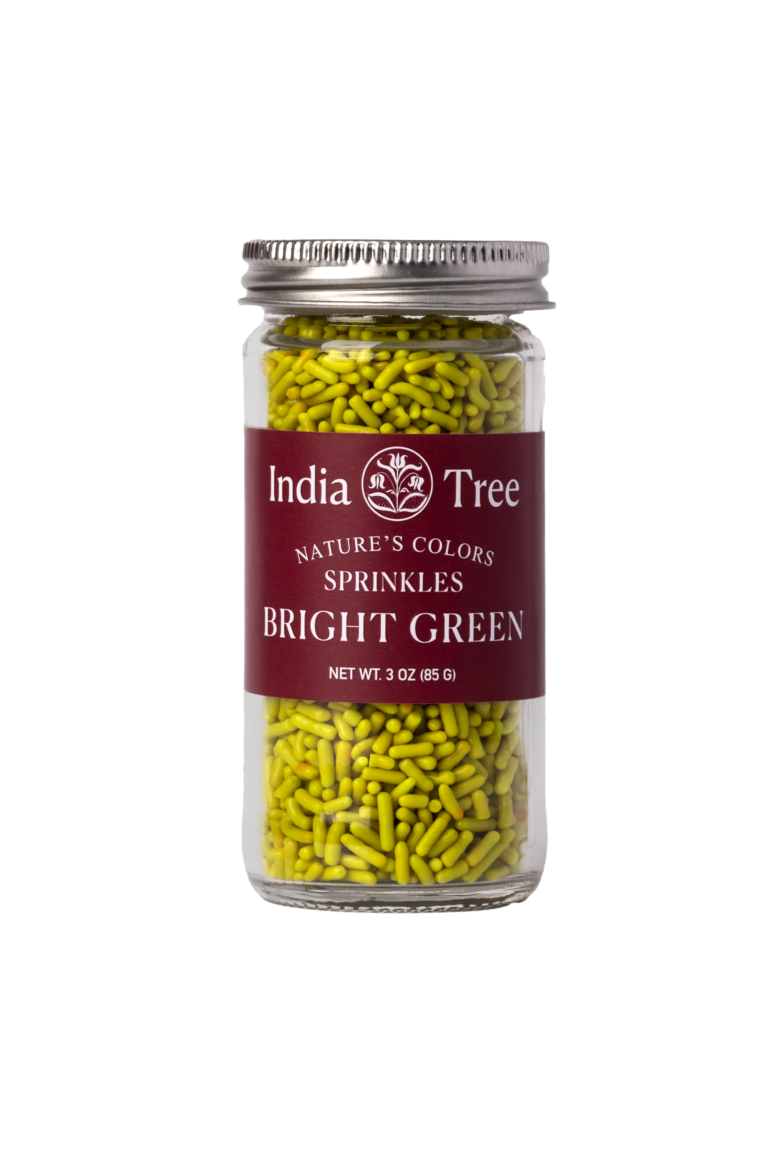 Dye-free green sprinkles with vegetable-based color (turmeric, spirulina) for bakery & confectionery use.