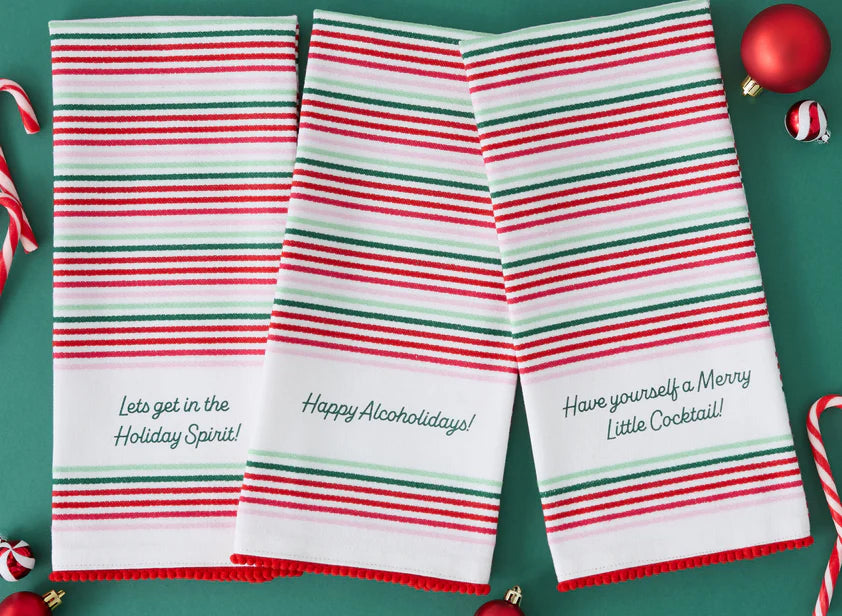 Design Imports Cheers Dears! Printed Dishtowels bring a playful touch of holiday spirit while delivering everyday kitchen utility. Crafted from durable, absorbent fabric, these towels are perfect for drying dishes, wiping counters, and handling routine cleanup. The festive printed design adds humor and cheer, making them a fun seasonal accent customers will enjoy using or gifting. Machine washable for easy care, these dishtowels offer long-lasting color and performance—ideal for holiday entertaining, retail assortments, and gift displays.