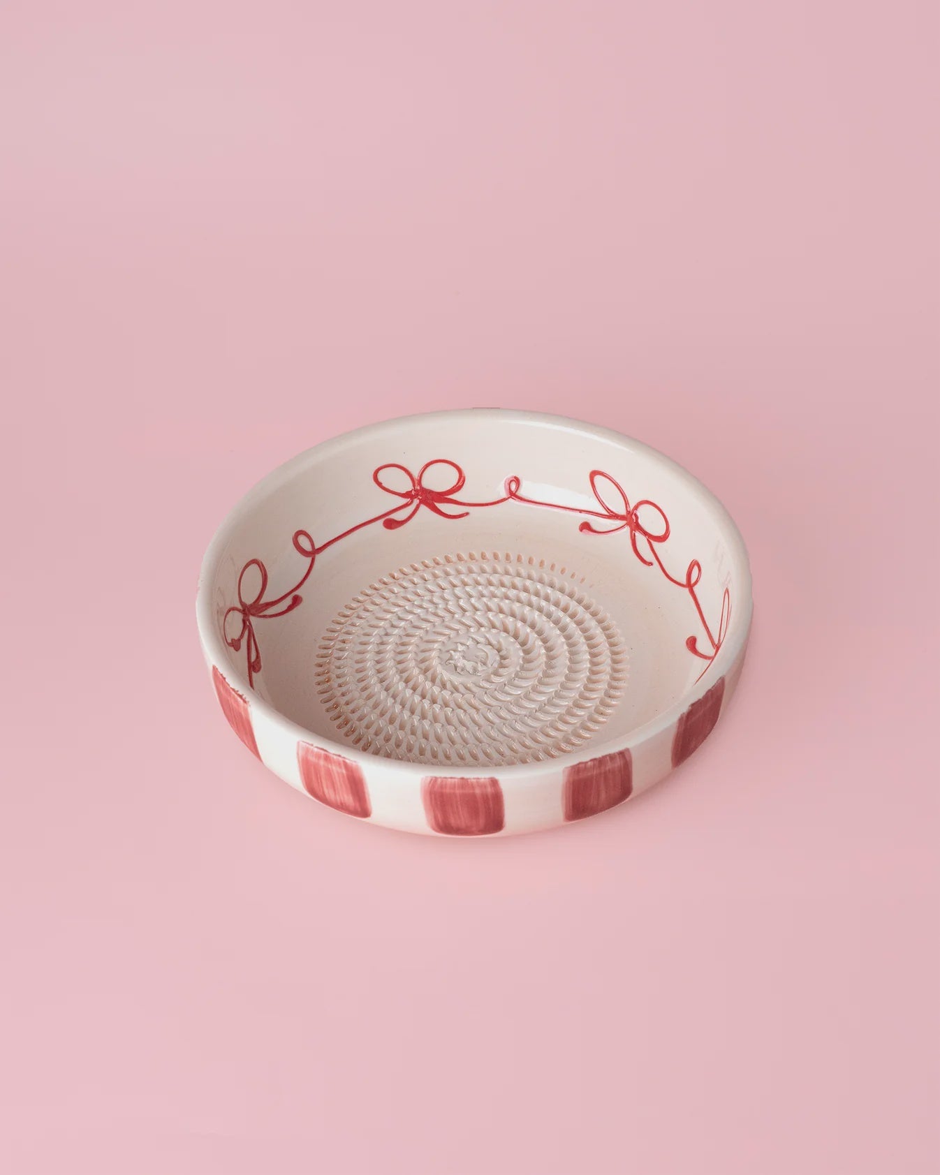 This Christmas, rediscover classic flavors with our ceramic grater plate, part of the Noelle collection. Its design with burgundy and beige bows, hand-painted in Spain, brings a festive and artisanal touch to your kitchen