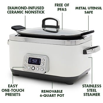 Our do-it-all slow cooker has more features than ever! Completely upgraded, our cutting-edge slow cooker is packed with 14 easy-to-use presets (including all-new stir-fry, rice, and bake settings), to deliver incredible flavor with the touch of a button.