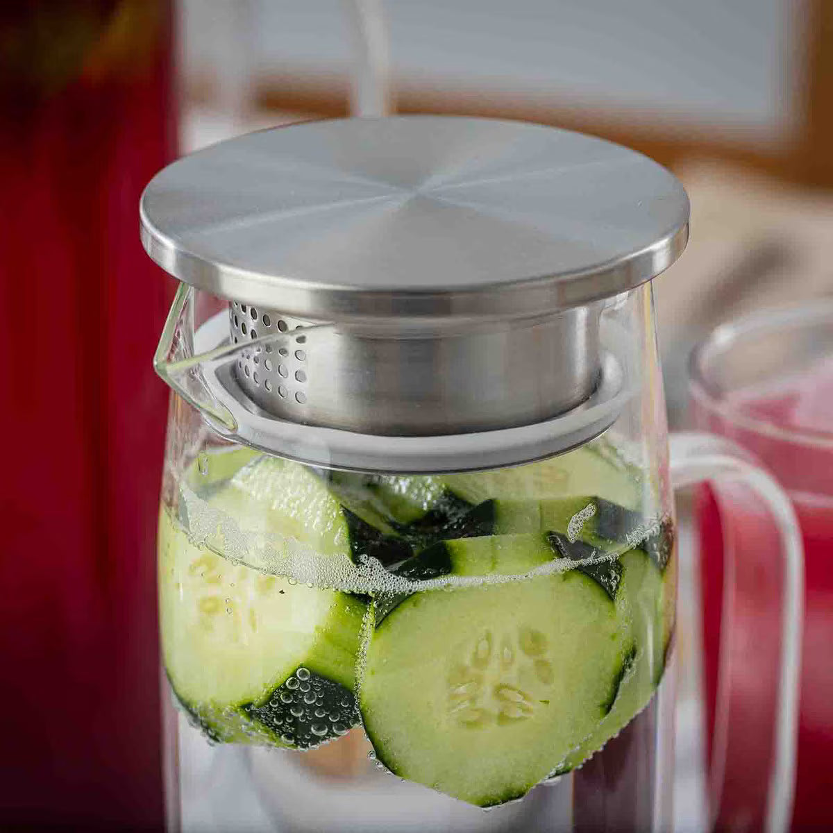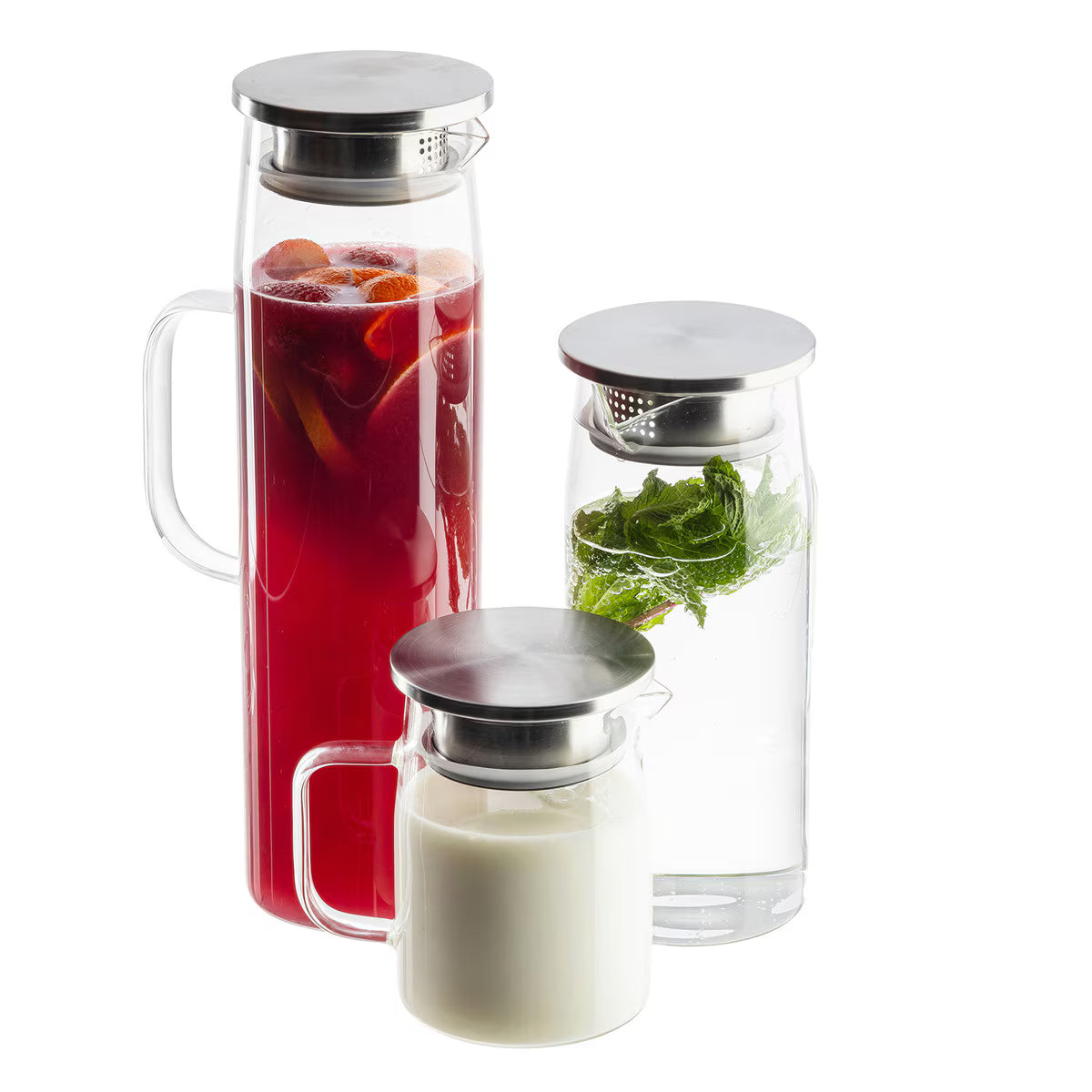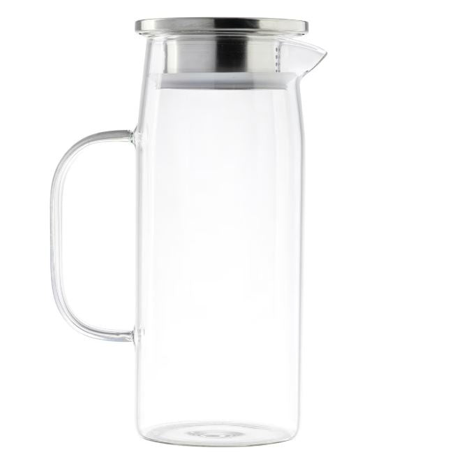 Glass Pitcher with Stainless Steel Lid, 34oz