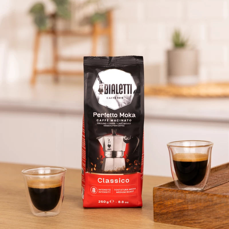 Crafted specifically for stovetop brewing, Bialetti Perfetto Moka Classico is a balanced blend of 50% Arabica and 50% Robusta beans, offering a creamy, full-bodied espresso with soft floral and dried fruit notes. A slow medium roast enhances its smooth, aromatic profile, while the grind is calibrated to bring out the best from your Moka pot.