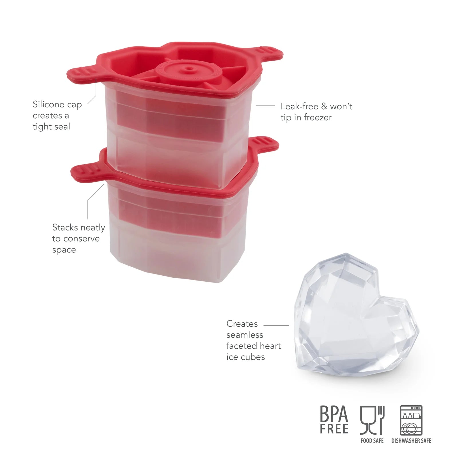 • Stackable Set: Neatly stack molds one on top of the other for optimum freezer space.
