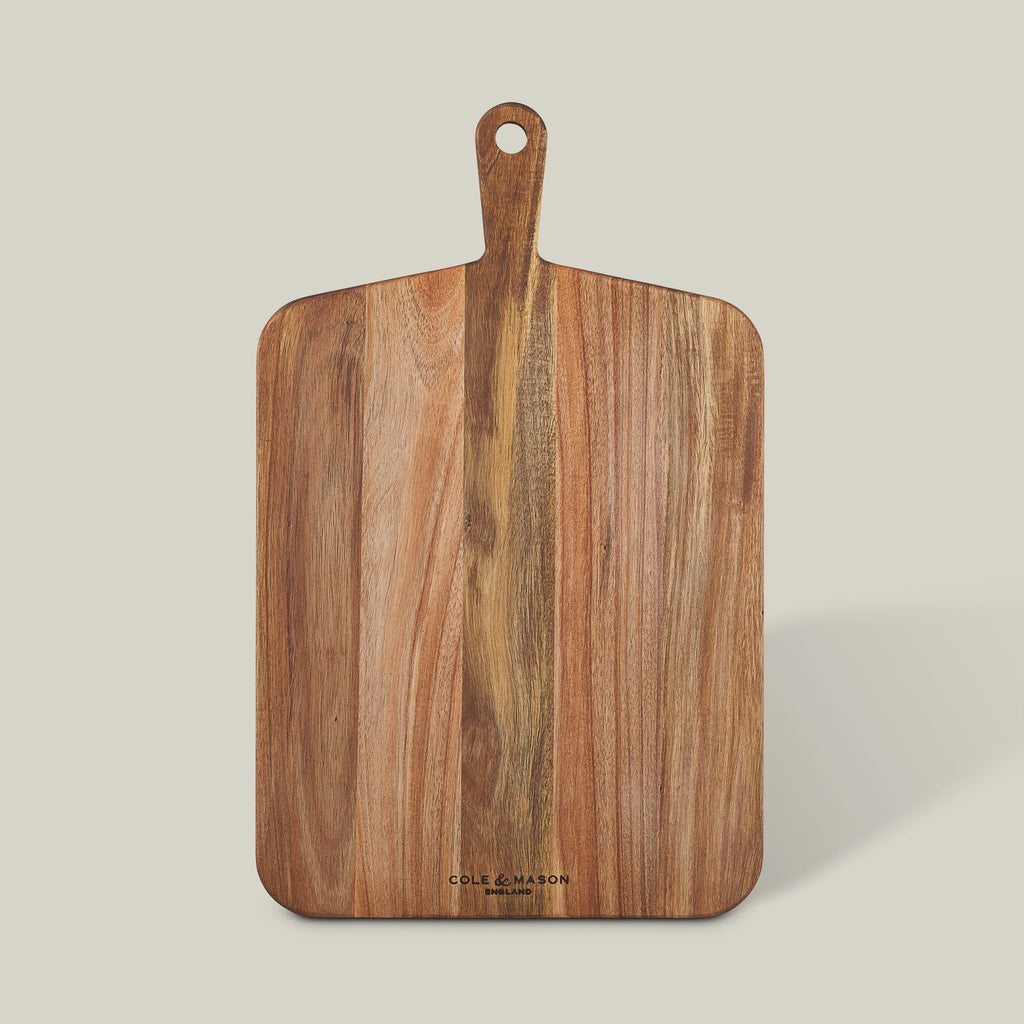 Crafted from rich acacia wood, this chopping board offers durability and a warm, natural finish