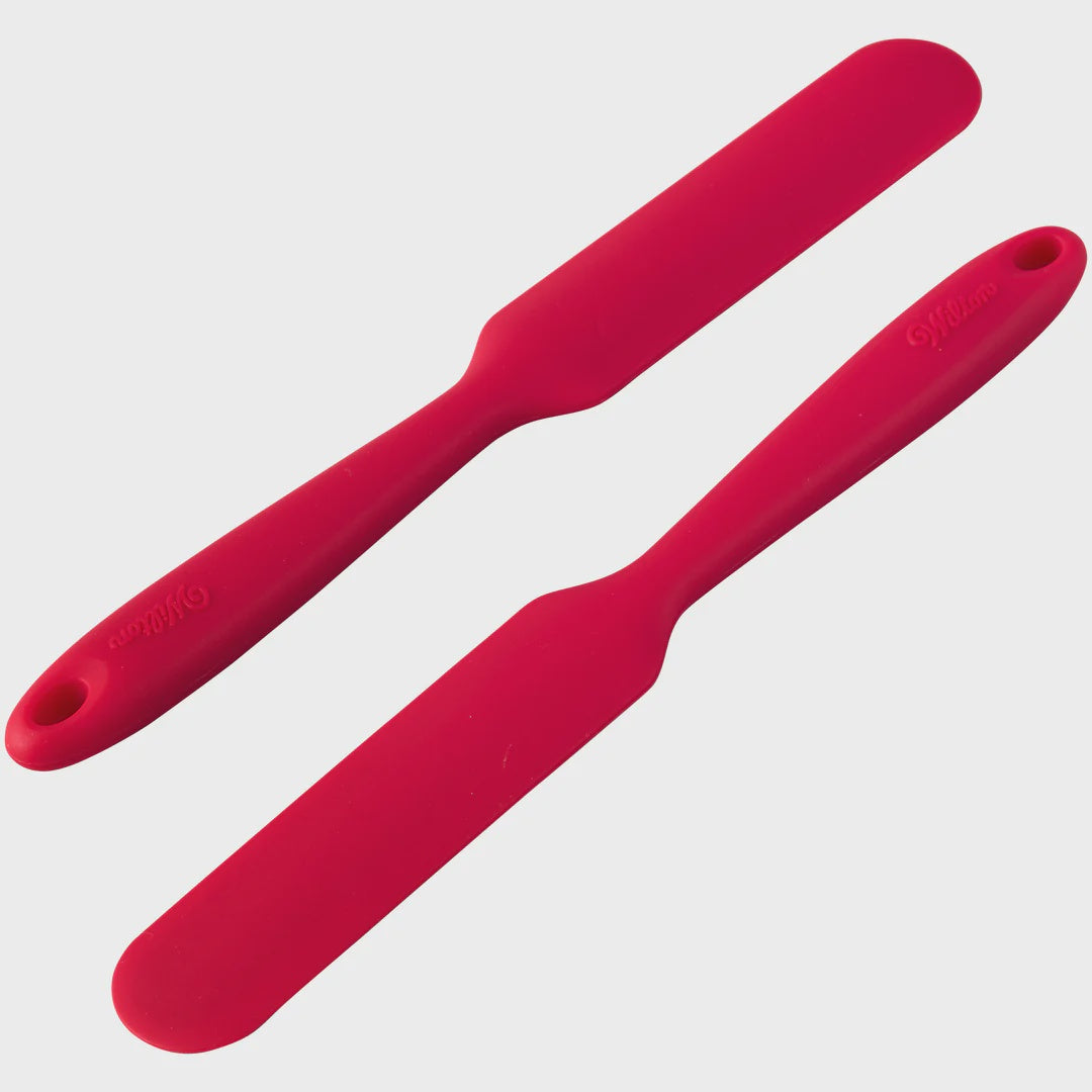 Master the art of frosting application with these vibrant red silicone icing spatulas. The straight edge design provides precise control when smoothing frosting on cakes, cookies, and cupcakes, while also excelling at scraping bowls clean. Heat-resistant silicone construction withstands temperatures up to 350 degrees, making them suitable for various baking tasks. Their compact size offers excellent maneuverability in tight spaces. Simply wash in warm, soapy water before first use and after each application to maintain optimal performance and longevity.