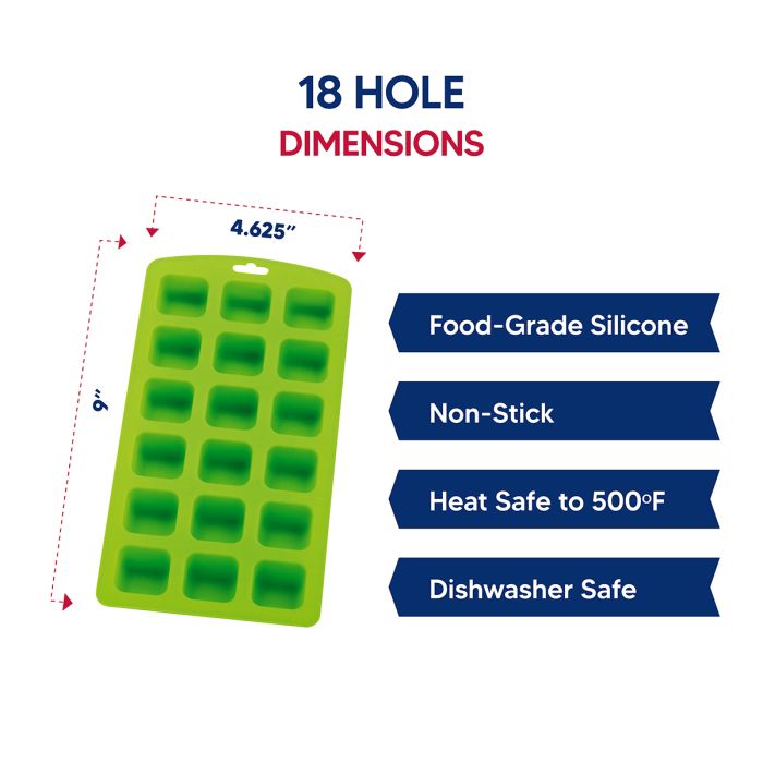 • Tray measures 9-inches x 4.5-inches; makes 18 square ice cubes