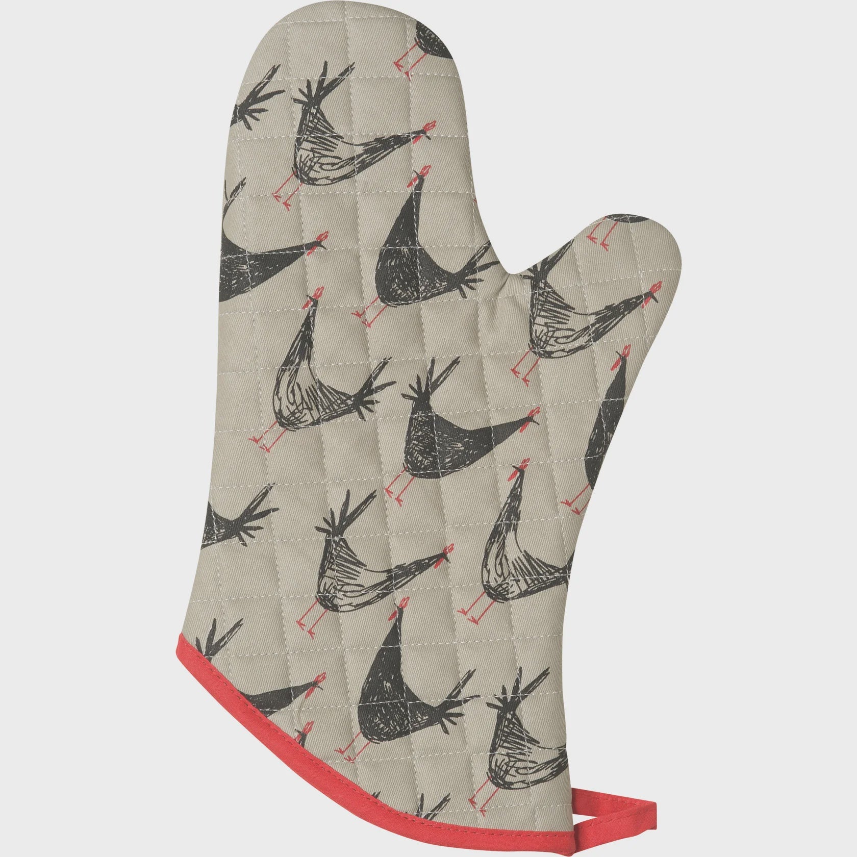 Let chickens come roost in your kitchen by using this hard-working Chicken Scratch Chef Oven Mitt from Now Designs. This red-trimmed oven mitt can handle taking hot trays of cookies out of the oven with ease.