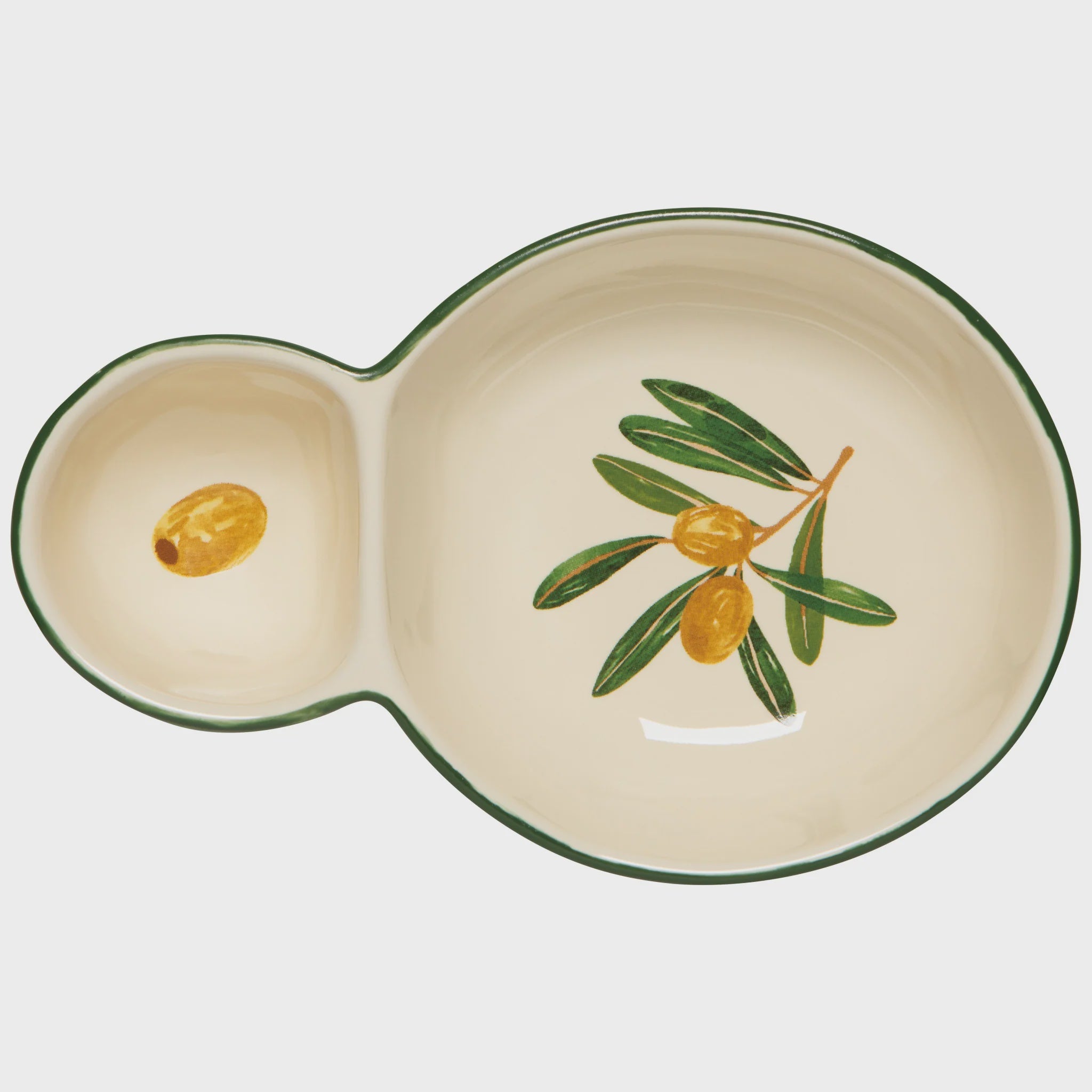 Offering a solution for an age-old entertaining dilemma, our Divided Olive Dish is designed with a designated place to put your pits. Our Olive Oil collection is a loving tribute to the invaluable olive.