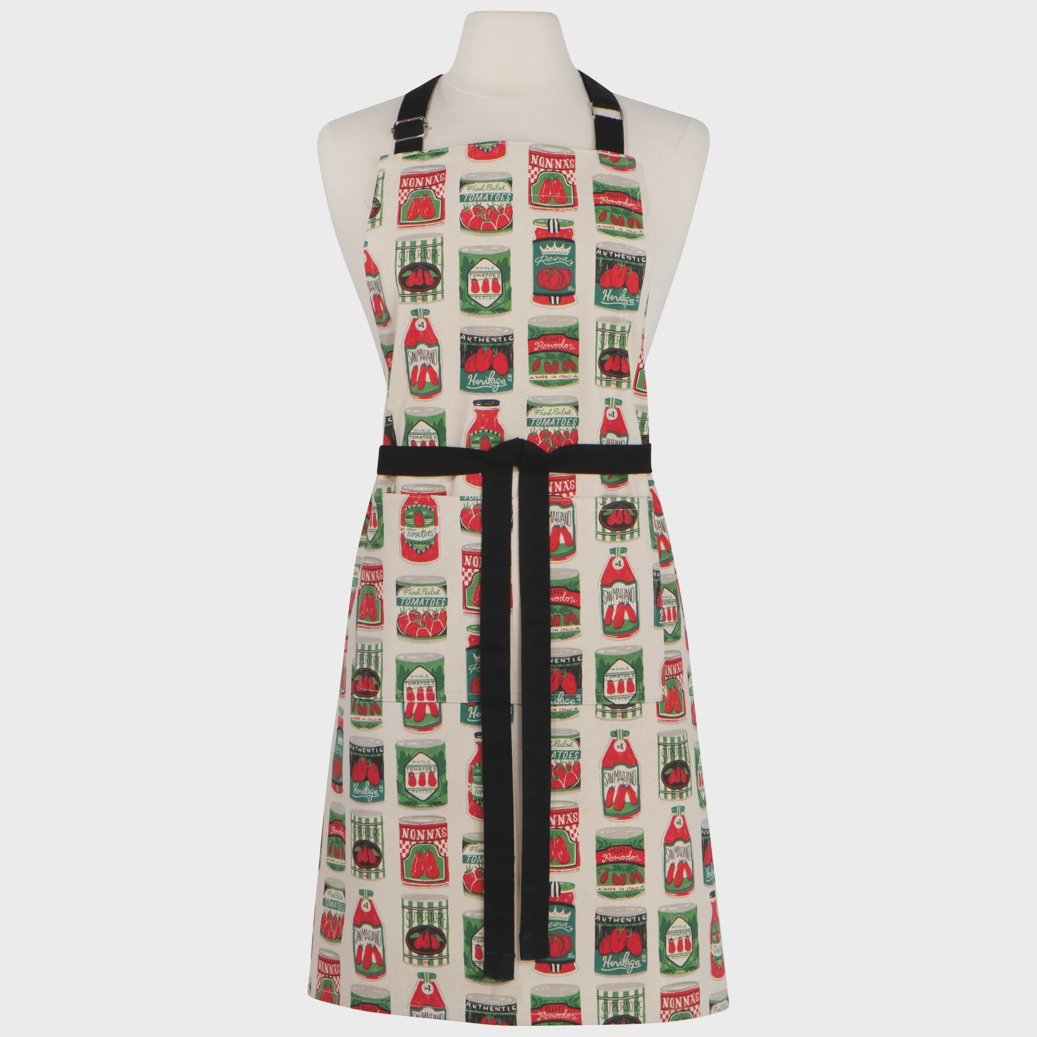 Our signature Chef Pomodori apron is a classic design with plenty of attention to detail. Featuring an easily adjustable neck strap and extra long waist ties for our best design yet. Inspired by vintage market stalls and timeless culinary craft, Pomodori pairs hand-drawn detail with playful lettering and classic red-and-green patterns. Juicy tomatoes, rustic labels, and lush vines evoke a sense of gourmet nostalgia—straight from nonna's kitchen.