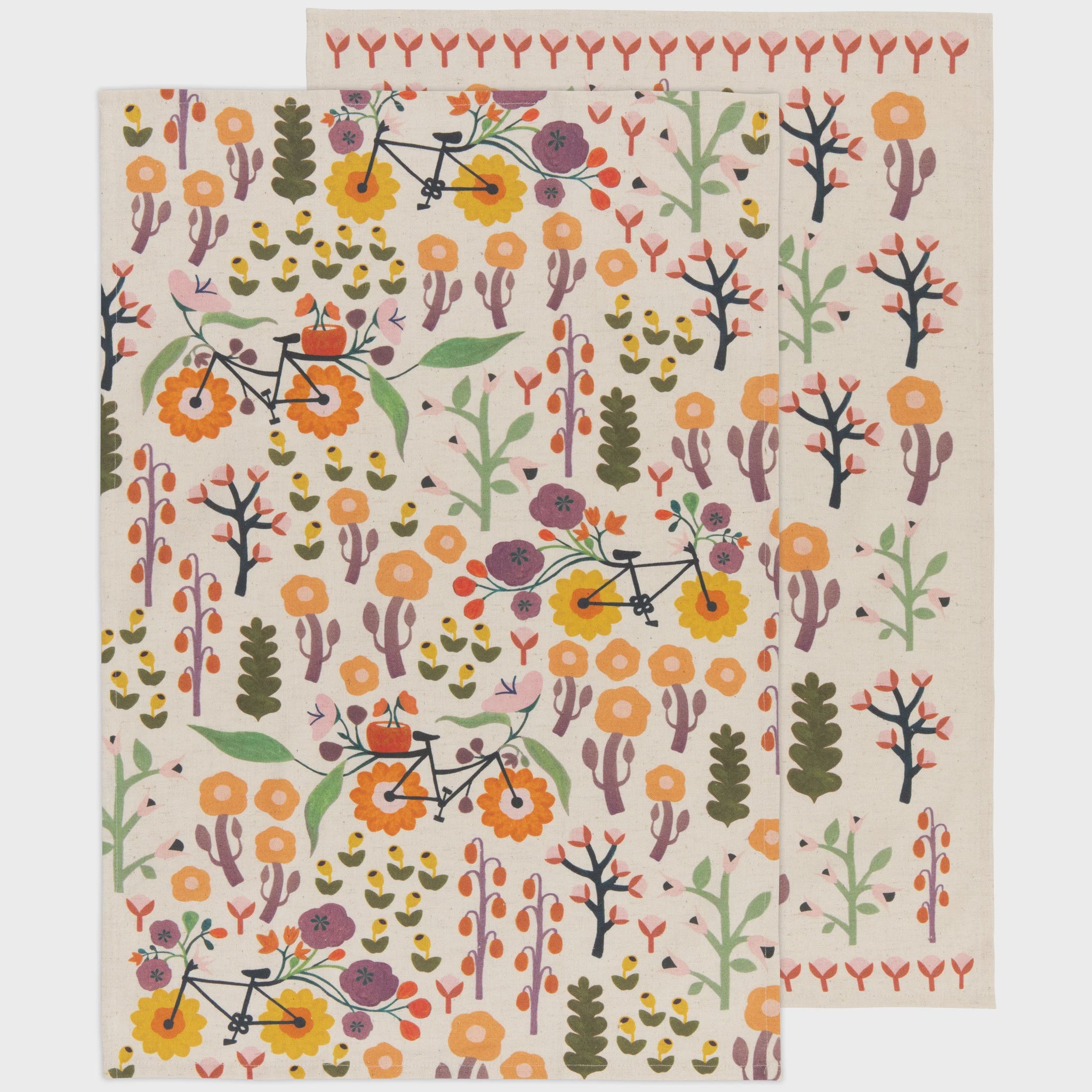 Add life and character to your kitchen with our fun and colorful Petal Power printed cotton dishtowel. A perfect combination of form and function, this towel will make washing up less of a chore. Celebrate spring's fleeting beauty with the Petal Power collection. Blossoms branch as you breeze along the bike path, pedaling towards longer, brighter days.