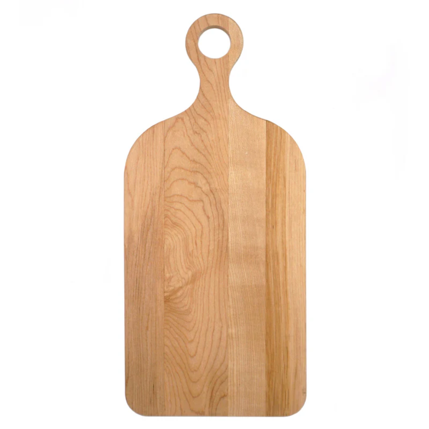 Our large Maple Paddle Handle Cheese board is an ideal size for a cheese board for 2-3 cheeses. These a favorite leaned up against your backsplash to become part of the decor of the kitchen.