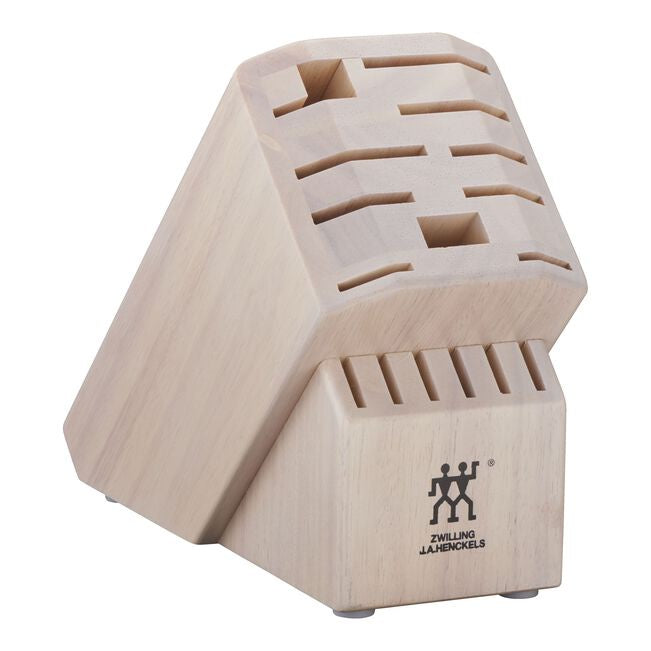 This handy knife block helps home chefs stay organized while maximizing counter space. The 16 slots let you safely store different-sized knives. Keep your favorite knives within reach for faster, easier prep work. The stylish white wood adds aesthetic appeal to your countertop. Accommodates the curved bolster of the ZWILLING Pro series knives. Cutlery experts since 1731, ZWILLING crafts premium products that enhance the lives of home and professional chefs worldwide.