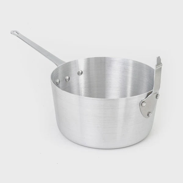 Great for heating up soups, sauces, pasta, and more, this fryer/sauce pan also features a securely riveted chrome-plated, fry hook that holds a fryer basket in place for deep frying. The long handle keeps your hands safe, and premium 3003 Aluminum promotes superior heat transfer for evenly balanced cooking. With its 5-quart capacity, you’ll be able to create a wide variety of dishes with the help of this multi-purpose sauce pan. Part of the Hyperion 3 Collection, the Adcraft Aluminum Sauce Pan with Fry Hook readily meets the demands of your busy kitchen and is NSF Certified.