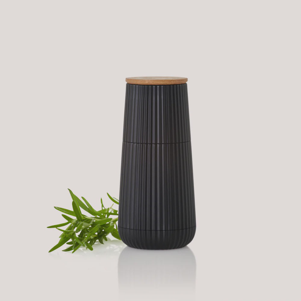 Elegant design, powerful performance – the Scape salt and pepper mill set impresses across the board. Its flowing, sculpted relief form fits perfectly in the hand and draws attention on any table. Best of all: the upside-down construction keeps surfaces clean, while the aroma cap pRedects your spices. Scape – the salt and pepper mill that brings true class to kitchen and table.