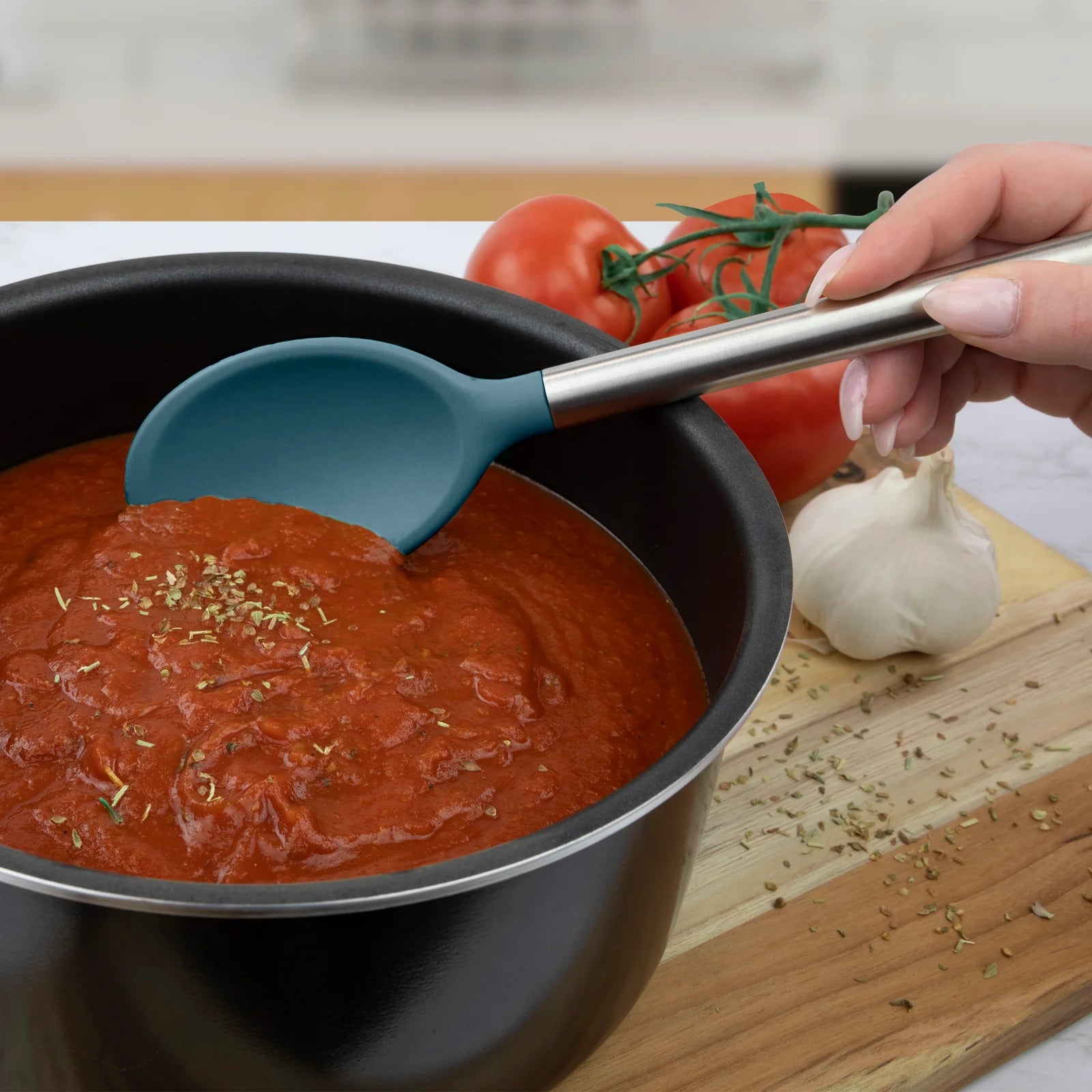 - Stainless Steel Handle: Stainless steel adds style and function to your kitchen utensils. The ergonomically shaped handle allows for a comfortable grip.